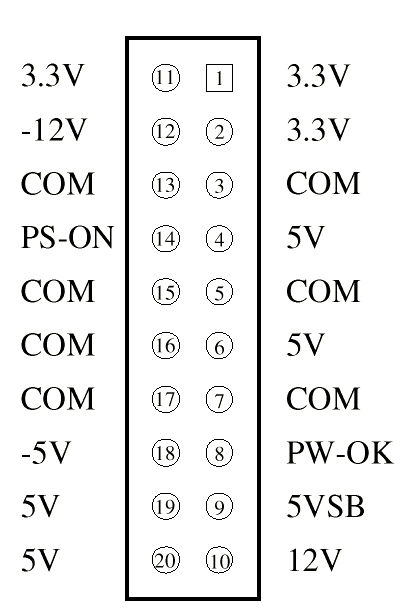 Piedinatura del nuovo connettore di alimentazione per PC compatibili.